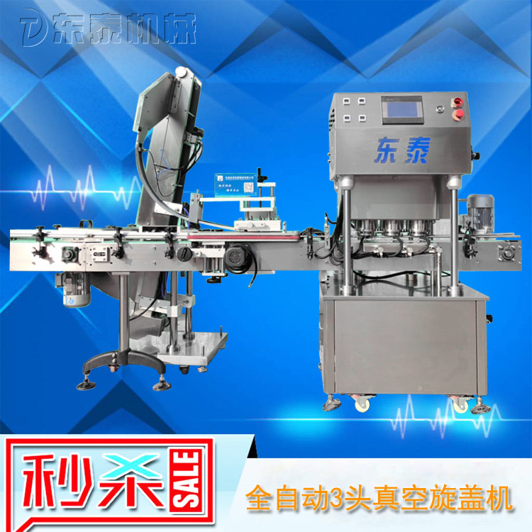 該直線式真空旋蓋機是東泰機械結(jié)合用戶使用的情況,摒棄了傳統(tǒng)轉(zhuǎn)盤式真空旋蓋機的弊端,研制開發(fā)的新型高效設(shè)備,設(shè)備自動檢測到兩個瓶子蓋子進入到雙頭真空旋蓋機內(nèi),旋蓋機彩色顯示屏會實時顯現(xiàn)旋蓋狀況,整機多點檢測,當進口無瓶無蓋、出口堵塞、定位不準、瓶身傾倒均自動停機。單個旋蓋頭達到的真空度都可以單顯示,單調(diào)整