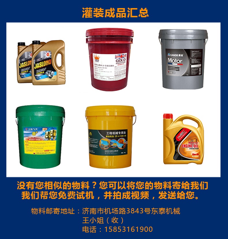 本機(jī)是根據(jù)潤滑油的特性而設(shè)計(jì)的一款全自動(dòng)稱重式潤滑油灌裝機(jī),該機(jī)設(shè)計(jì)緊湊合理,外形簡潔美觀大氣,灌裝量調(diào)節(jié)方便,精度高,借鑒灌裝流程控制技術(shù),進(jìn)口彩色觸摸屏人機(jī)界面,灌裝進(jìn)程實(shí)現(xiàn)一鍵式操作,性能穩(wěn)定。采用兩個(gè)316儲油箱解決灌裝量大的問題,一個(gè)進(jìn)油口控制兩個(gè)油箱的液位,一個(gè)儲油罐分別控制5個(gè)灌裝頭,速度更快,精度更高。