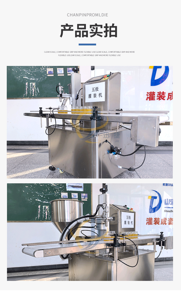 五極灌裝機(jī):極快-單頭2200瓶/時(shí) 極簡(jiǎn)-操作簡(jiǎn)單 極廣-啥啥都能灌 極穩(wěn)-24小時(shí)不停機(jī) 極準(zhǔn)-200g誤差小于1g。它可以和真空旋蓋機(jī)搭配使用。