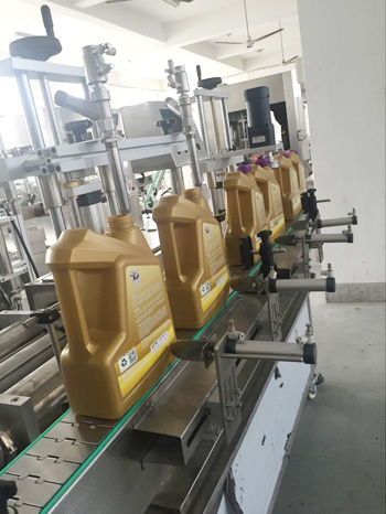 潤滑油灌裝旋蓋一體機為活塞式計量方式。計量范圍為1升-5升,離合式旋蓋結構,確保旋蓋合格率高,不傷蓋。本設備為灌裝旋蓋一體機,結構緊湊,性價比高。該型號灌裝機適用于醫(yī)藥、日化、食品、農藥及特殊行業(yè),是對酒精等液體進行灌裝的理想設備。