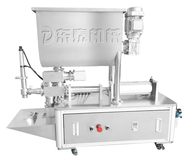 DTG-500-DV型半自動辣椒醬灌裝機結構合理、機型小巧、性能可靠、定量準確、操作方便,動力部分采用氣動結構,均采用國內知名氣動元件。物料接觸部分均采用304不銹鋼材料制成,符合GMP認證的要求。采用加大攪拌料斗,料斗容積可達120L,立的全鋁外殼銅芯攪拌電機,變頻調速,可適應于各種醬料的灌裝。可根據用戶需要在機型范圍內任意調節灌裝量及灌裝速度,灌裝精度高。灌裝悶頭采用防滴漏裝置。