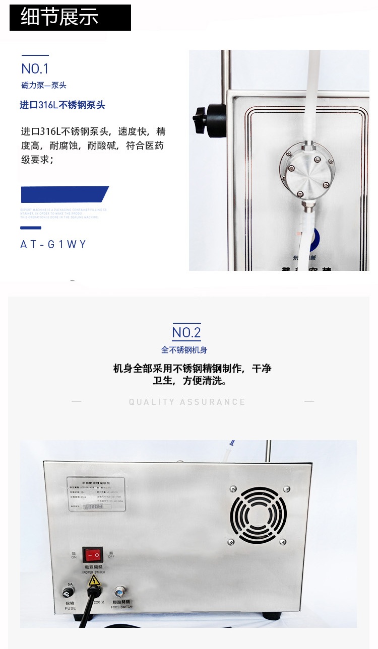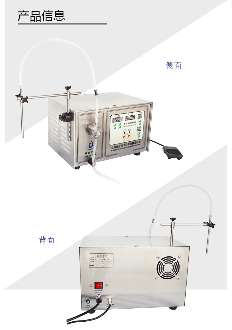 該機為磁力泵式灌裝機,適用于藥劑、化學品、油類、化妝品、食品、實驗室用等無顆粒狀液體的灌裝。