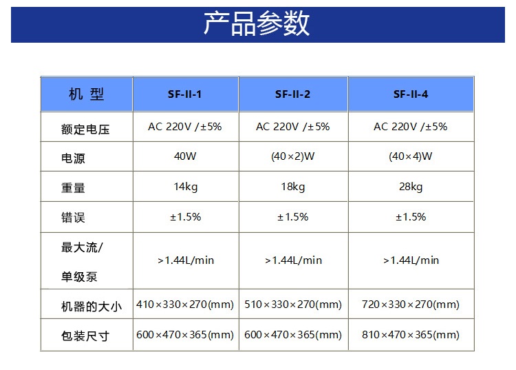 8、灌充量SF-II從1ml至10000ml可調;SF-I從10ml-80000ml可調,調節方便。