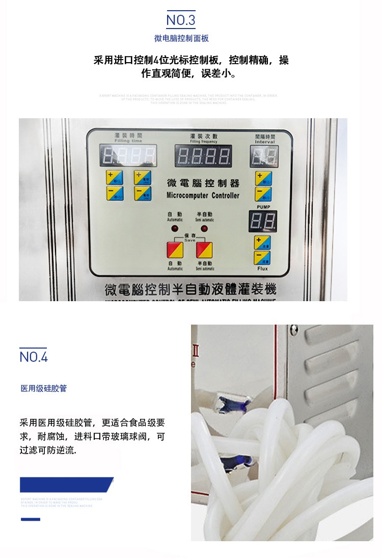 7、可配多個灌裝頭,常用的型號有:單泵機、雙泵機和四泵機;
